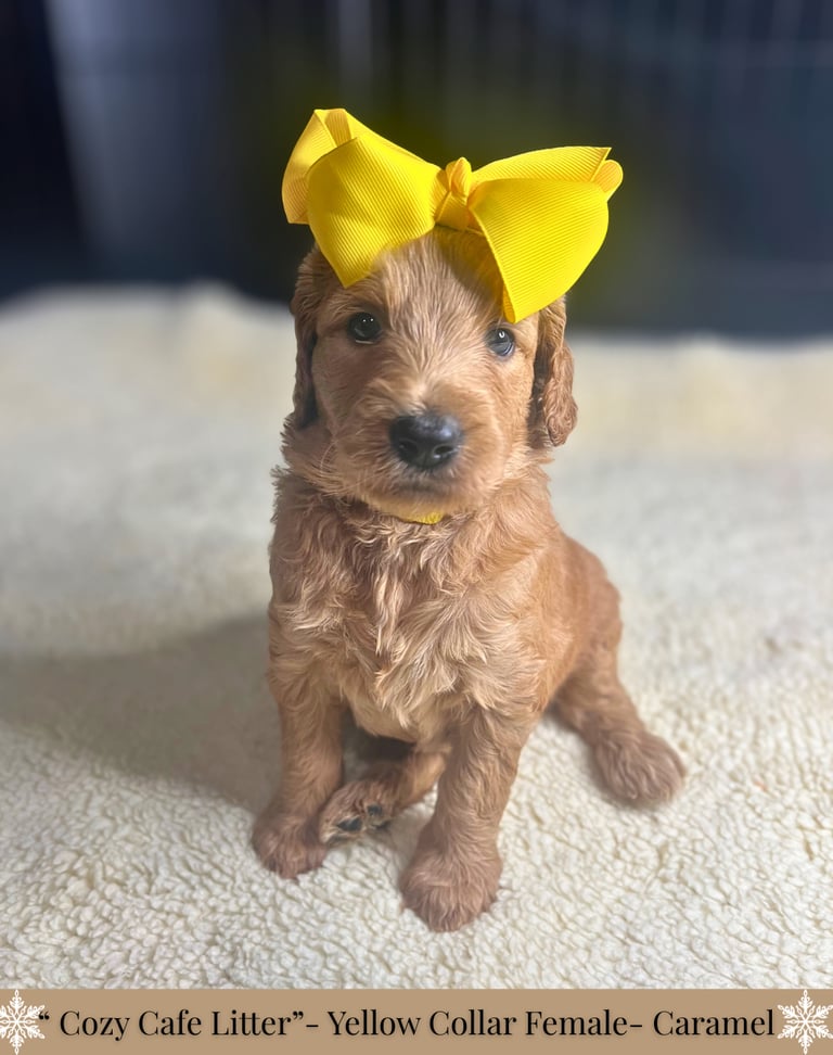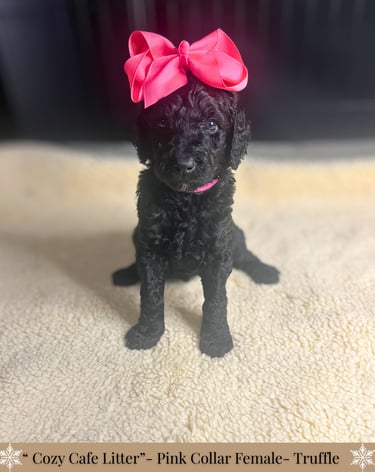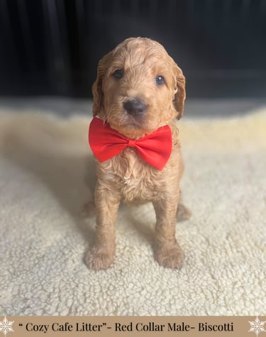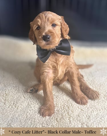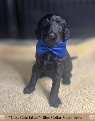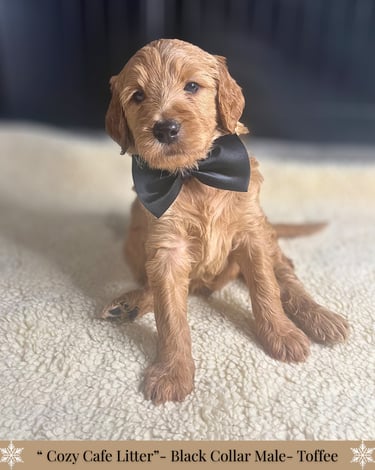 -Each puppy will go home with a thoughtfully curated custom care package to help make their transition as smooth and comforting as possible. This includes a supply of the food they’re currently eating and any supplement they're on, with a cozy blanket carrying the familiar scent of mom and littermates. You'll also receive a special gift, poop bags, along with a few other bonus items including a detailed health record. To support you in your puppy’s journey, we’ve included an at-home grooming guide and a variety of helpful printouts with tips on adjusting to life with your new puppy, socialization, and more!